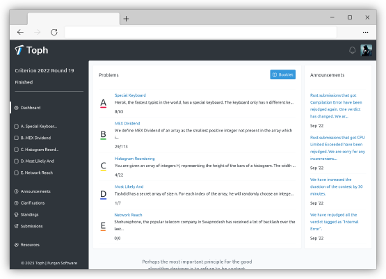 ফুরকান সফটওয়্যারে আমরা গর্বের সাথে টাফ-কে উপস্থাপন করি, যা আমাদের উদ্ভাবনের প্রতি প্রতিশ্রুতির প্রতিফলন এবং আমাদের ফ্ল্যাগশিপ কম্পিটিটিভ প্রোগ্রামিং প্ল্যাটফর্ম।